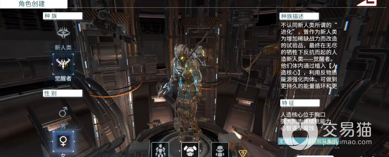 首先由于世界观的架构是在未来,角色的风格都以机甲风为主,在角色创建的页面,我们就能看到每个部位时不时的就会发光。