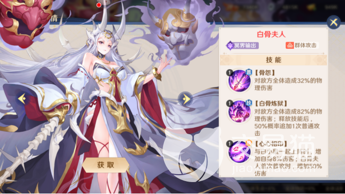 白骨夫人可能是全游最简单暴力的角色了,从普攻到大招都是对敌方全体造成伤害,有些人吐槽这个角色倍率很拉垮,但是全体AOE普攻摆在这,完全可以通过普攻持续输出,人家明明是一个“砍王”所以技能倍率上不会像传统角色那么好看,羁绊是搭配白小鼠增加自身伤害。