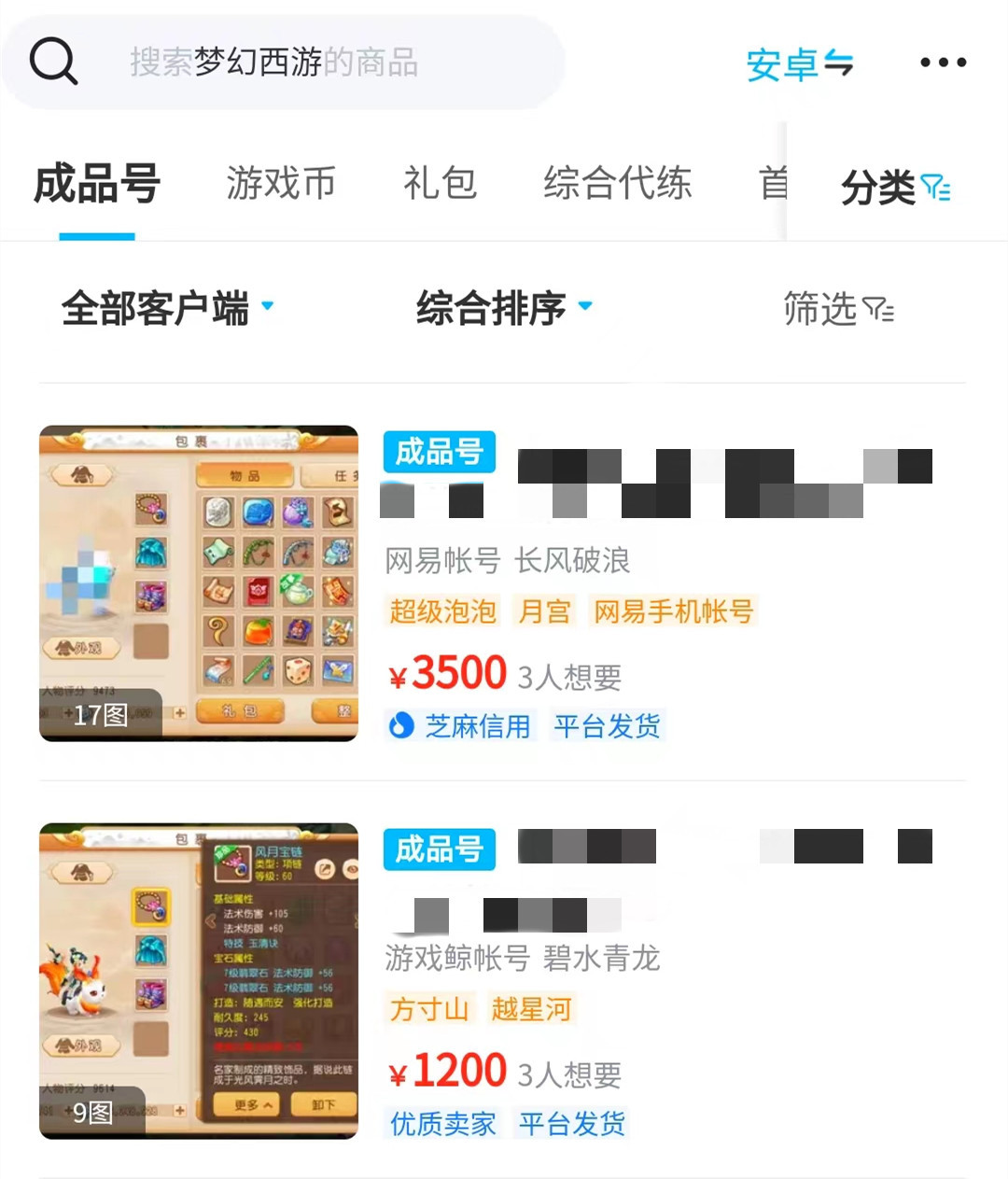 以上就是小编收集到西游账号售卖去哪个平台好的全部信息,小编最后建议大家在出售账号时加入到安心购和找回包赔服务当中,因为安心购和找回包赔服务只针对部分商品,如果大家加入进来,可以再次提升出售几率,同理,芝麻信用服务也可以获得众多玩家的信赖。