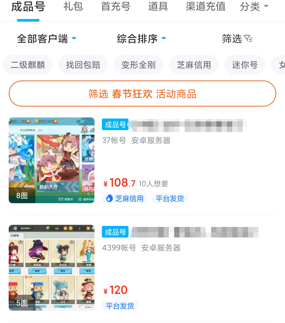 相信不少玩家在迷你世界中,都惊讶于游戏中多样的角色,在游戏世界中选择一个自己喜爱的角色皮肤,然后开启一段旅程是不少玩家梦寐以求的事情。但是有一些皮肤并不是很容易获得,而交易猫平台就为大家提供了一个机会,里面有着何怒都的优质账号,玩家可以在平台上自己挑选,找到自己喜欢的账号,因为平台上面有着很多的玩家,账号数量也有很多,给了大家很多的选择余地,只要是大家想要的账号,基本都可以在平台上找到。