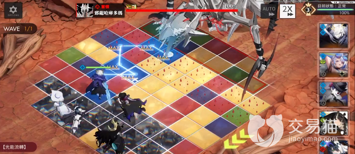 连锁技能:连锁两格,向十字方向8个格子造成,1160%攻击力的伤害;连锁8格,对附近12个格子造成165%攻击力的伤害。连锁13格,对于实质方向和附近一圈造成165%的伤害。连锁13格子以上虽然没有攻击力的加成,但是攻击范围变宽广,因为希罗娜本身的攻击力不差,所以攻击到的敌人越多,累计伤害就会越高。
