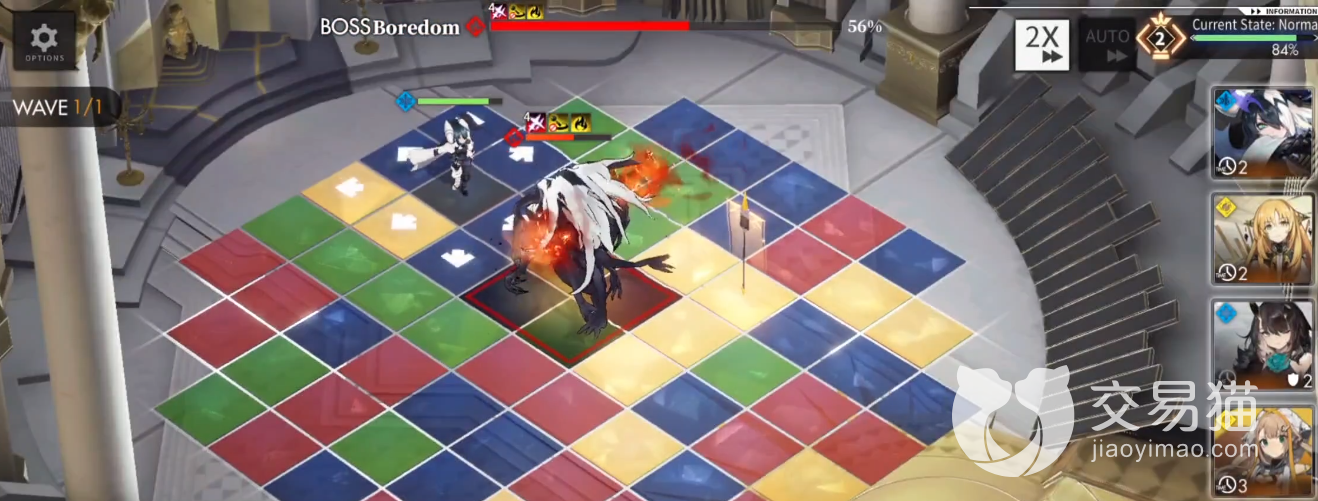 主动技能:瞬移到指定格子并对指定位置周围两圈格子造成300%的攻击力伤害,冷却CD是3回合,觉醒之后冷却CD为两回合。