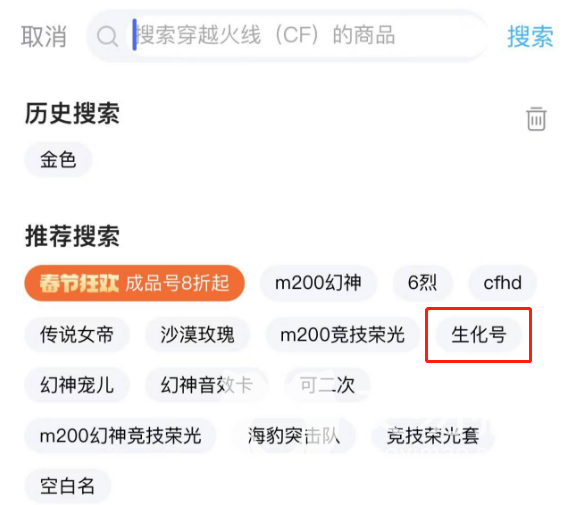 不知道大家是不是也看到了,在平台里面是有穿越火线游戏专区的,并且里面的账号类型也是很多,它贴心的把热门搜索词汇都推荐了出来,其中就包括了生化号,说明玩家对于它的关注程度很高,也证明在平台里面此类游戏账号不在少数,否则也是难以出现在搜索推荐之中,这样一来,玩家自然也就不用担心在这里找不到自己心仪的生化游戏号了。
