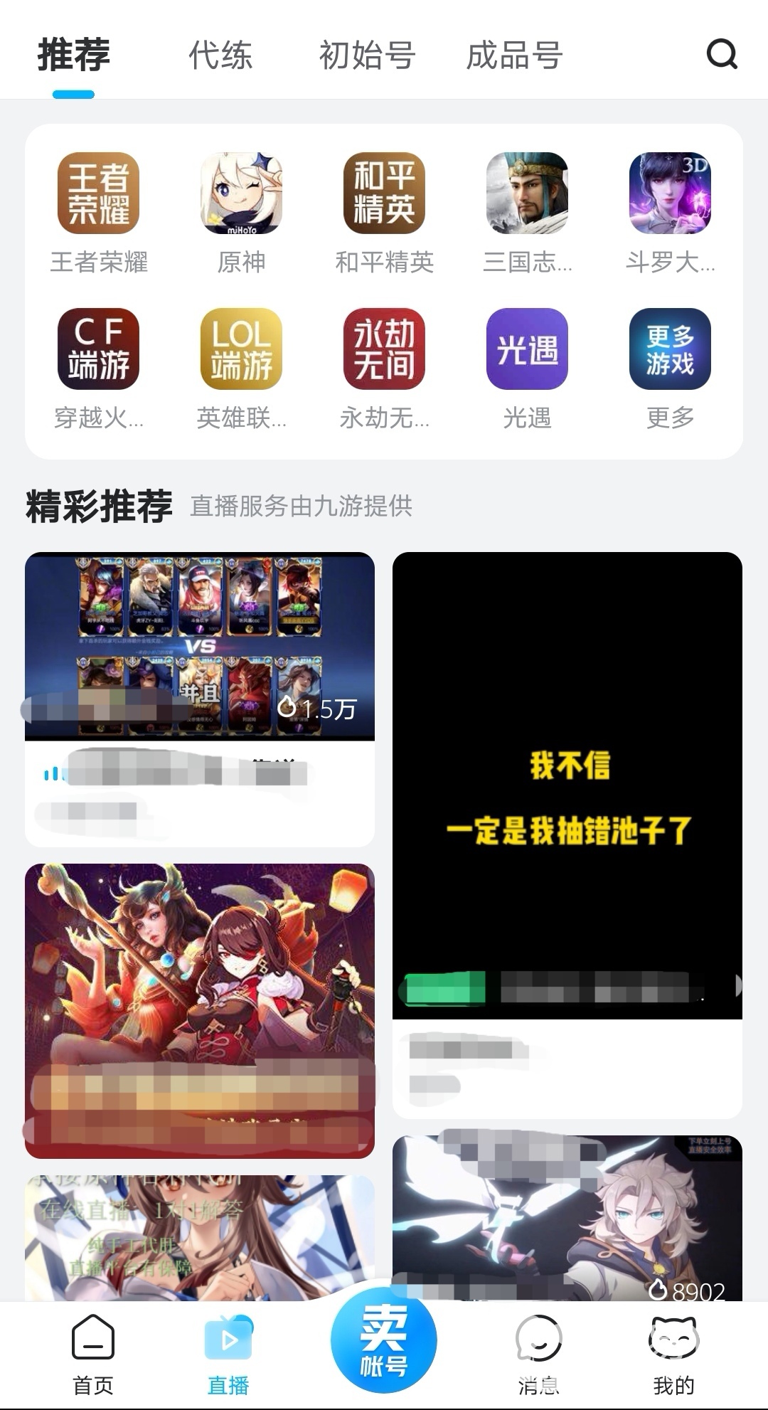 第三种,有一些人会选择在交易猫当中进行直播,在直播间当中大家可以去看到各种各样的游戏账号,一些主播也会对游戏账号进行估值估价,这样就能够让大家去了解自己的账号到底值多少钱了,有理有据地进行评估和评判,这样才能更容易的将自己的账号出售,并且让更多的买家看到。