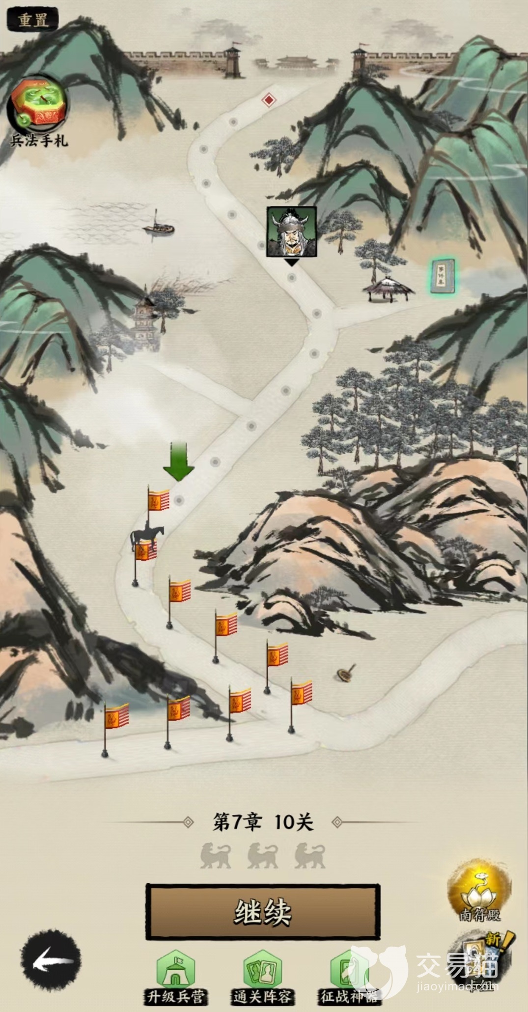 在战斗模式上采用了自走棋的玩法,所以如果是玩过炉石传说或者是金铲铲之战的玩家上手起来会更简单一些。游戏中的闯关和战斗是以章节为单位,在同一章节中分布着大量关卡,从第1关开始就累积军饷和出战卡牌,其中军饷是非常重要的内容。在完成每一个关卡的挑战之后,都会获得一定数量的军饷,在对战过程中可以花费一定数量军饷购买不一样的武将卡片,然后以拖拽方式上阵。