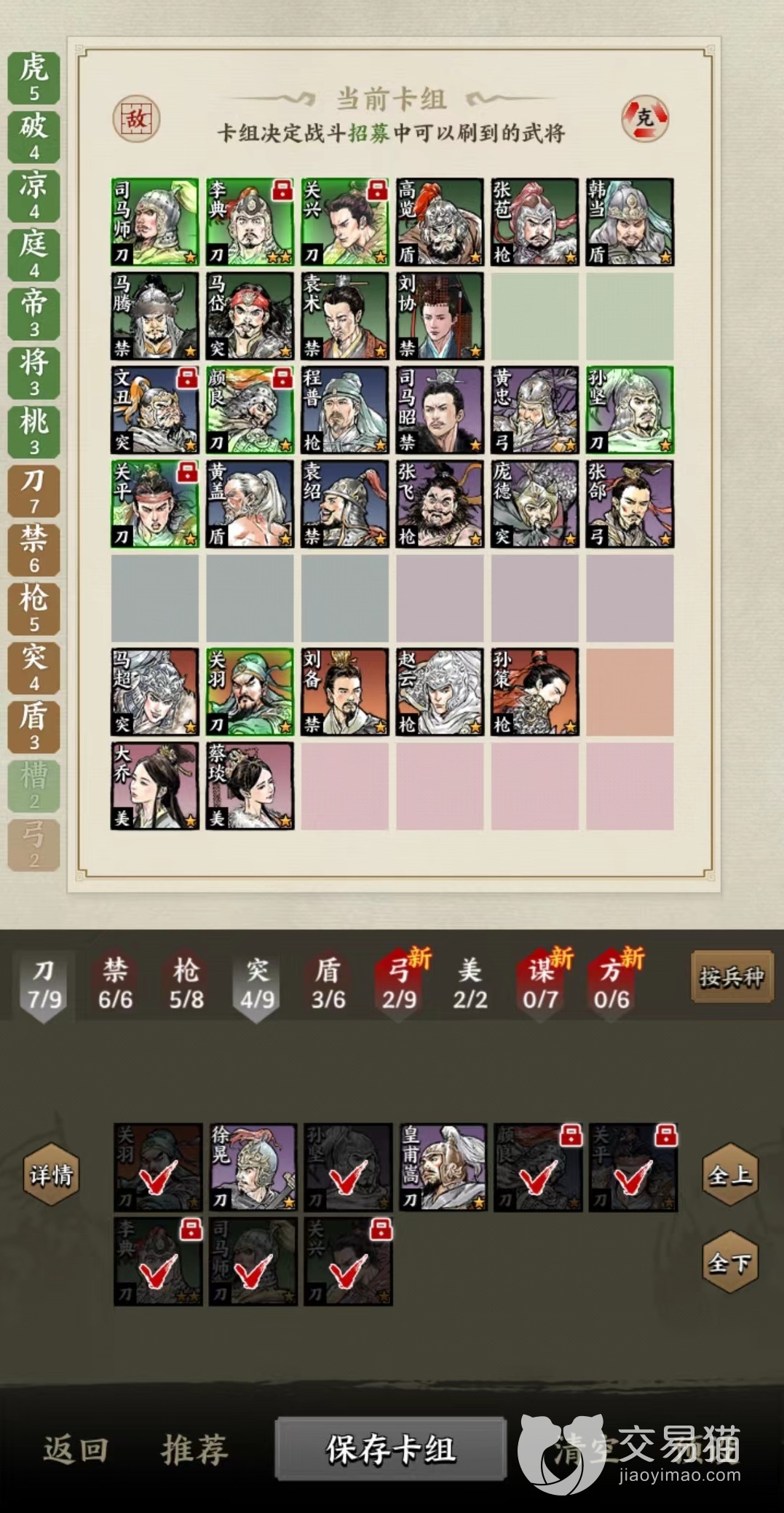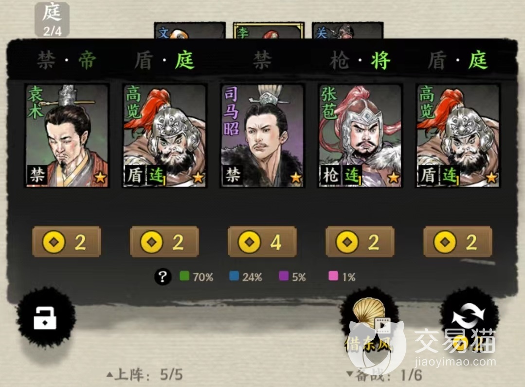 如果当前所刷新出来的卡牌不是自己需要的类型,还可以花费军饷重新刷新,出战卡牌品级越高,消耗军饷也就越多。最基础的绿色牌只需要两点军饷就能出战,而紫色就需要4张。除了招募和刷新之外,还有一项很重要的作用就是升级,如果不进行升级则很难刷新出高品质卡牌,同时上阵位置也有限,目前最多可以出战九张牌。
