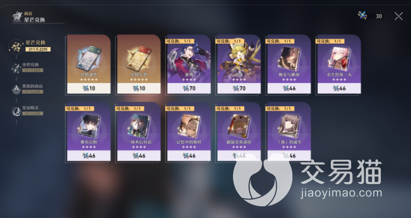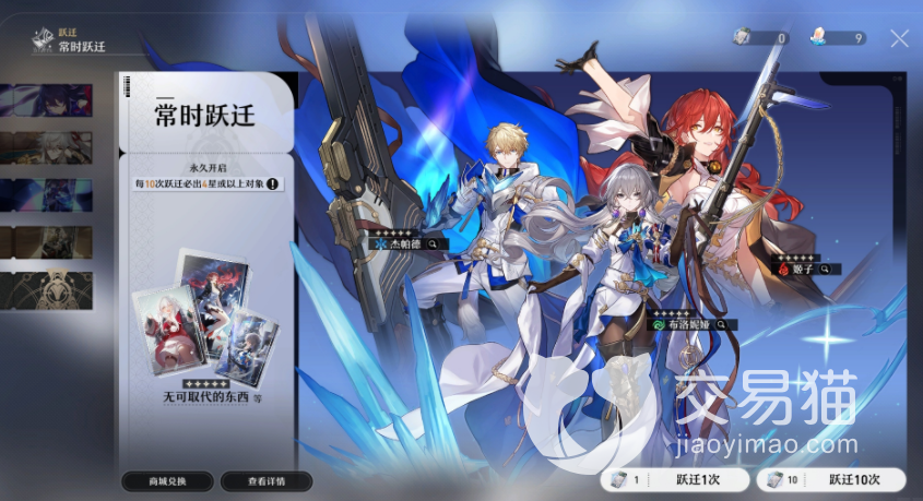 同时,卡池会有五位五星级角色等待我们抽取,抽卡是需要通过星轨通票才能完成的,玩家们如果在做任务的时候获取到的星轨通票数量不够的话,也可以使用代币去购买,基本上兑换比例是160 : 1,连抽的话可以获取一个四星级以上的道具。