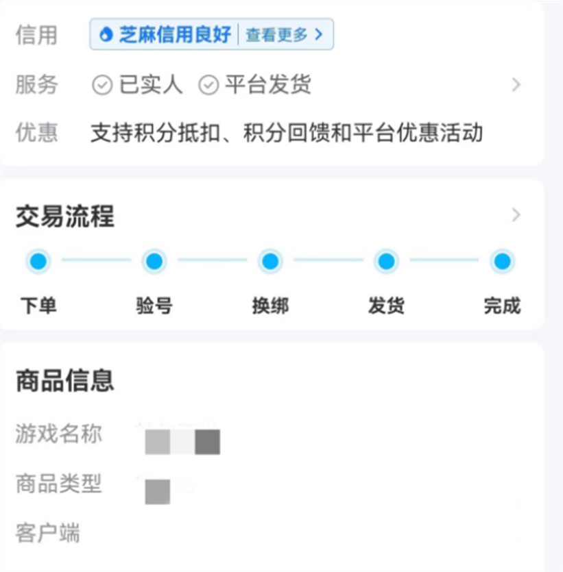 小伙伴们在买号之前肯定是想要尽可能详细的了解到账号的具体内容,但是又没有账号的密码,用来登录账号来查看。那么详尽的商品页面就可以帮助到大家,可以在页面里了解到商品的基本信息和卖家的芝麻信用等情况。