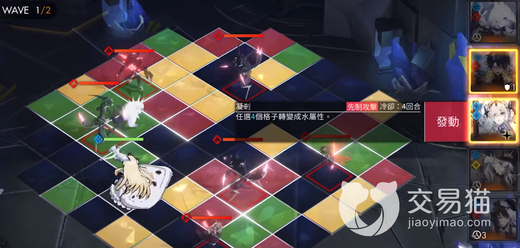 主动技能:玩家自选4个格子转化为水属性蓝格,初始是4回合CD。一突破增加先制效果,三破减1CD。