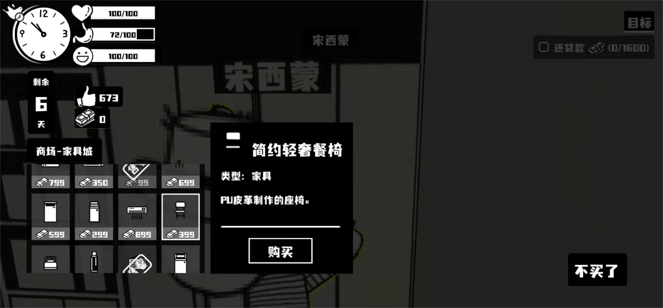 电器行的工作人员名为“赵西蒙”,它是这整个电器摊的负责人,里面除了售卖各种家电以外,也会顺带售卖一些床和桌椅,在首次光顾的时候你可以先与他进行对话,这样你也好清楚购置家具时的一些规则,以及赵西蒙本人的一些性格特征。