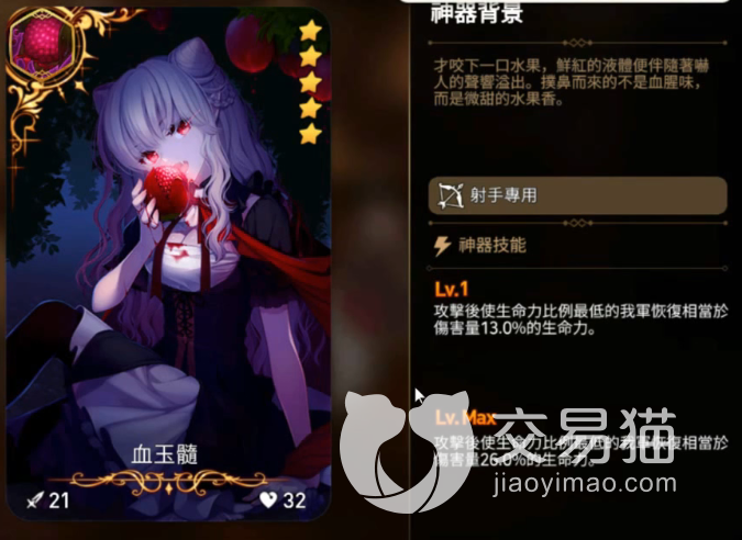 不过后期可以激发出血玉髓的最大技能,最大的技能在恢复量上有额外的加成,从13变成了26,这样来看的话,对于射手这种生命值一般的角色来说,这个技能确实是必备的,抬血的同时还可以在打深渊的时候使用。