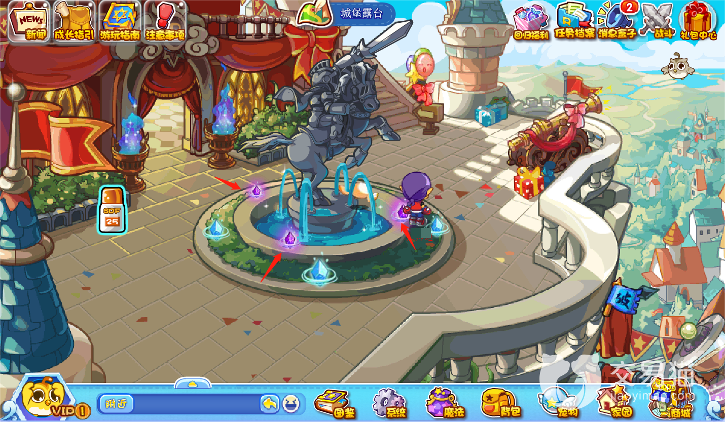 第一种方法是前往城堡露台处按照左右中的顺序点击蓝水晶或紫水晶,城堡露台可通过王国城堡-外交使馆-宴会厅进入,通过这种方法有一定概率进入轻风山,如果首次点击水晶没有被传送,那么可以返回宴会厅然后再回露台重新点击。
