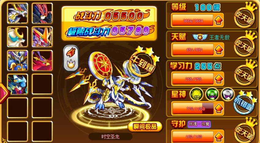 16年:超神圣龙。在拥有前一年神兽全部技能效果的前提下,它还有着百分百暴击与命中的加成,同时每次必杀还能追加一次攻击并降低敌方气势。