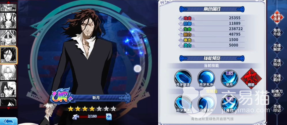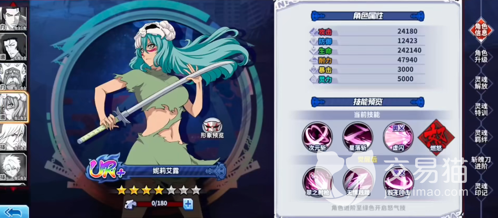 这是四个UR中唯一没有在常驻池的角色,他的技能中兼具位移与控制能力,并且每个技能的加成都很高,在刷本的时候能够迅速的剿灭小怪,而且相比其他版本的一护来说,其数值和斩魄刀都会更加强大,如果有条件的话后续在常驻中再抽出妮莉艾露能够打出绝佳效果。