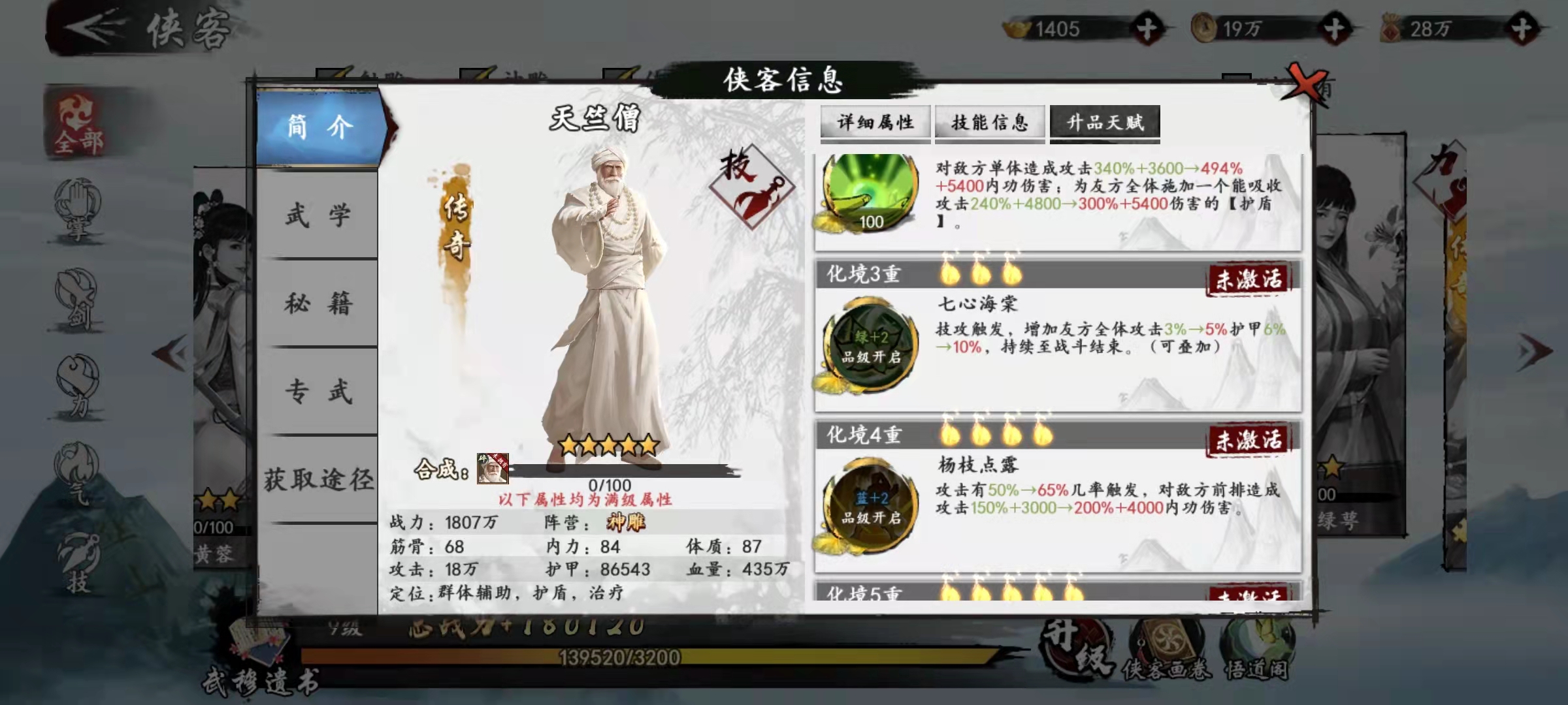 他是前期很强力的一个奶爸,在升品后甚至连被攻击时都有几率为友方全体回血,其一技能可以打出不错的内功伤害,同时还将为友方全体提供由攻击力加成的巨额护盾,二技能还将为友方提供攻防两端的加成,大招更是有几率眩晕敌人,为自身回血。
