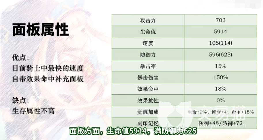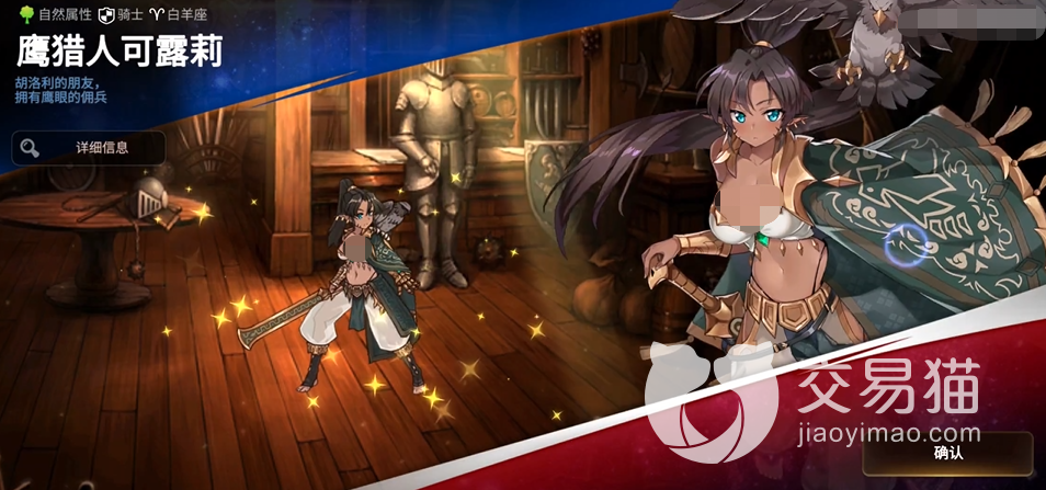 一般说起骑士很多玩家第一反应就是她,鹰盾的速度是骑士之最,可以说没有哪几个角色抵得上她的速度,这一点是目前游戏中最绝的,因为它的命中几率也是比较高的,配合快速在队伍作战的时候可以撕出一道口子,在阵容当中也是比较亮眼的。