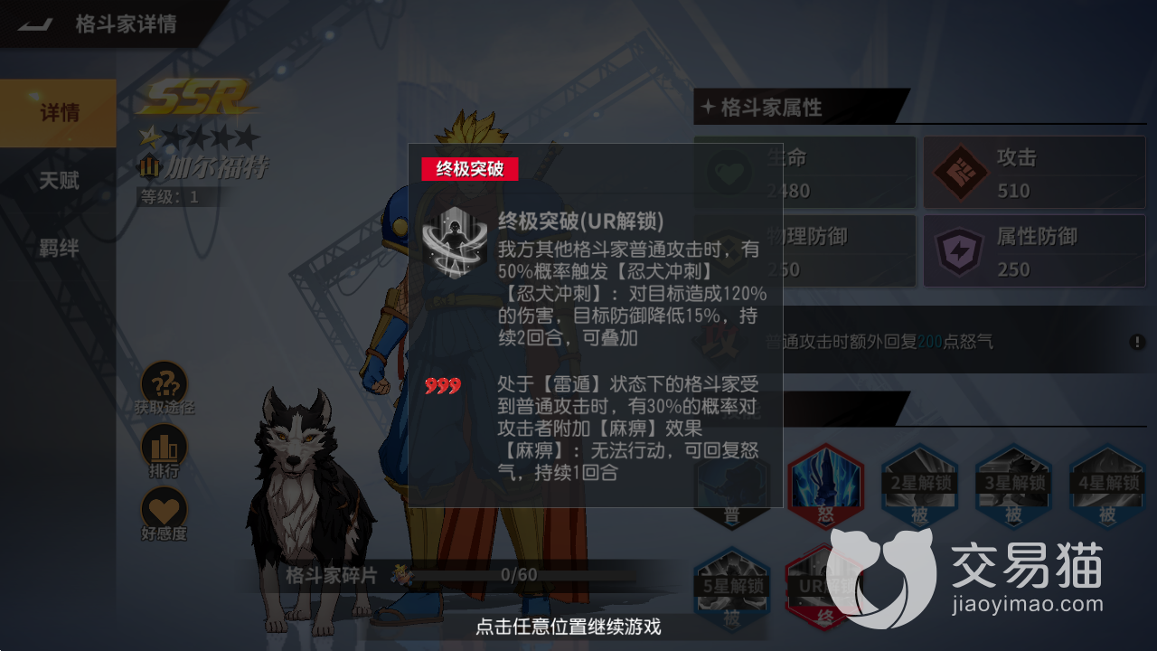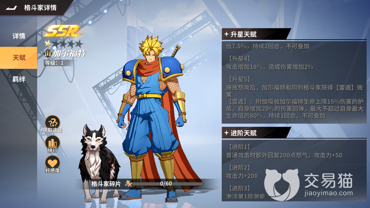 好了,关于“全明星激斗加尔福特怎么样”的内容到这里已经介绍得差不多,作为一个输出型格斗家,该角色的强度还是不错的,而且被动的忍犬冲刺也能很好的与队友形成联动,所以如果你已经抽到,就大胆培养吧!