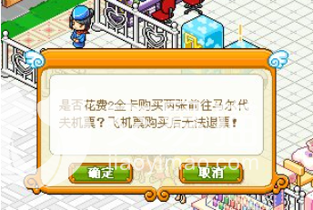 只要大家的角色是已婚的身份以后大家就可以在上面找到机场,在机场上面的NPC那里大家可以购买机票,两张金卡就可以购买到去马尔代夫的机票了,这也是游戏中给新婚玩家的一个蜜月旅行,不过需要注意的是大家获取到机票以后要看上面的时间,因为机票也是有限期的,过了有效时间就会失效。
