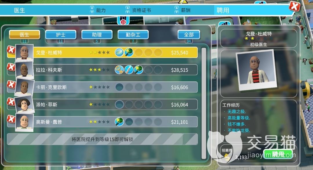第三步,多建造一些用于放松的设施或者休息室,让员工的体力能够得到回复,而不至于因为过度劳累而离职,毕竟这些医生和护士才能让我们赚到钱。如果这样他们还是不满意,无法升级的话,可以考虑提高员工的薪资。