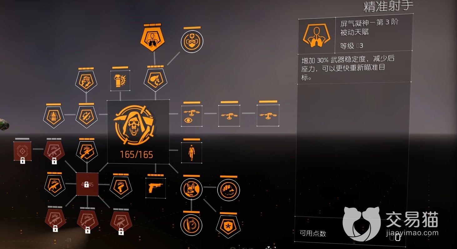 再就是精准射手,针对喜欢玩突击步枪的玩家。突击步枪为了追求伤害,配件方面大部分会考虑堆精英伤害、暴击、暴击率这些,所以就需要精准射手中的一些天赋来提升稳定度。例如“屏气凝神”就可以提升30%的武器控制力,降低后座力从而更快的重新聚焦。部分武器压枪难度很高,有了这个天赋就会觉得好用很多。