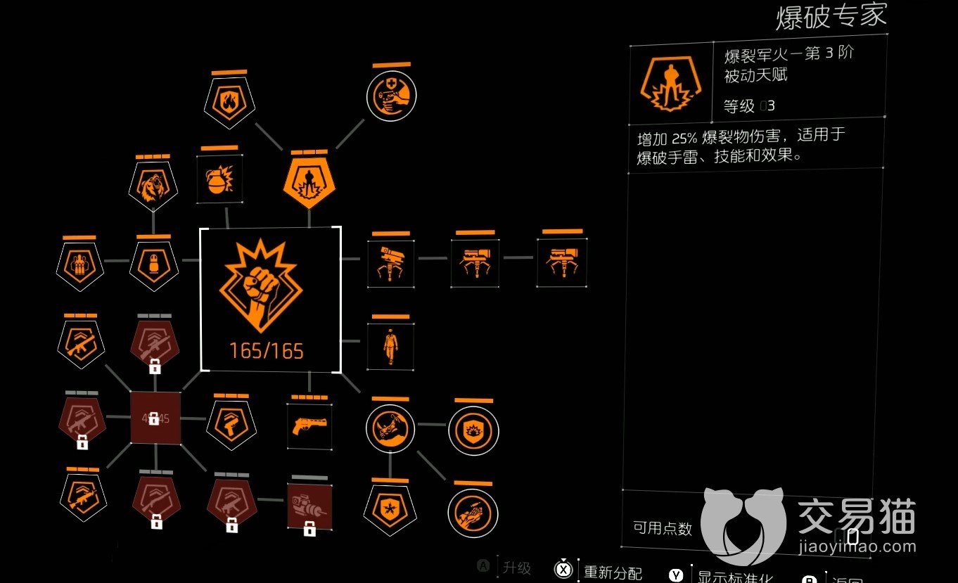 如果没有重机枪手,那么则推荐爆破专家,属于比较均衡的特化职业,在四个项目中的优先级还是很高。如果你想玩电工,那么就必须选爆破专家了。被动天赋“爆裂军火”增加25%的爆裂物伤害,像是爆破手雷、技能分裂溜溜球也是能享受这个伤害加成的。其它的诸如“装甲包”、“战术连接”等等。虽然爆破专家对输出的增益没有重机枪手来得多,但也是一个非常不多的选择。