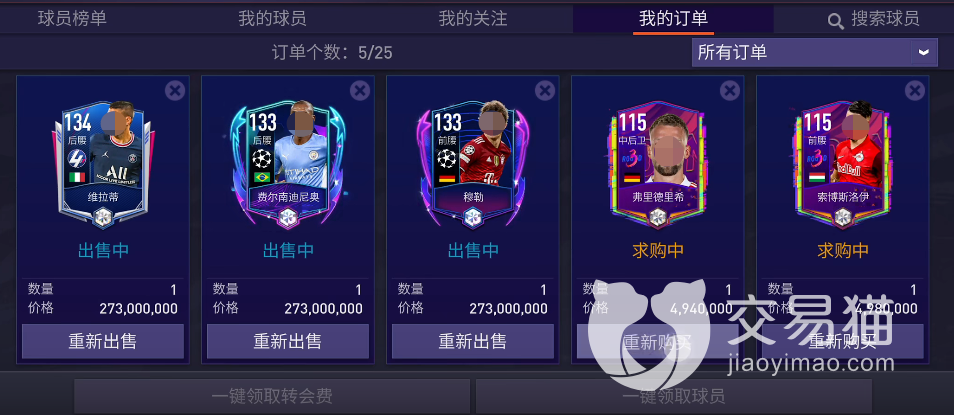 玩家想要领取转会费的话,首先要找到主页面里面的转会市场,里面就是所有的转会成员信息,在其中找到我的订单这个选项,在其中大家就可以看到目前玩家自己的订单,订单中已经转会成功的球员可以直接点击下方的领取转会费,这样就算成功领取啦。