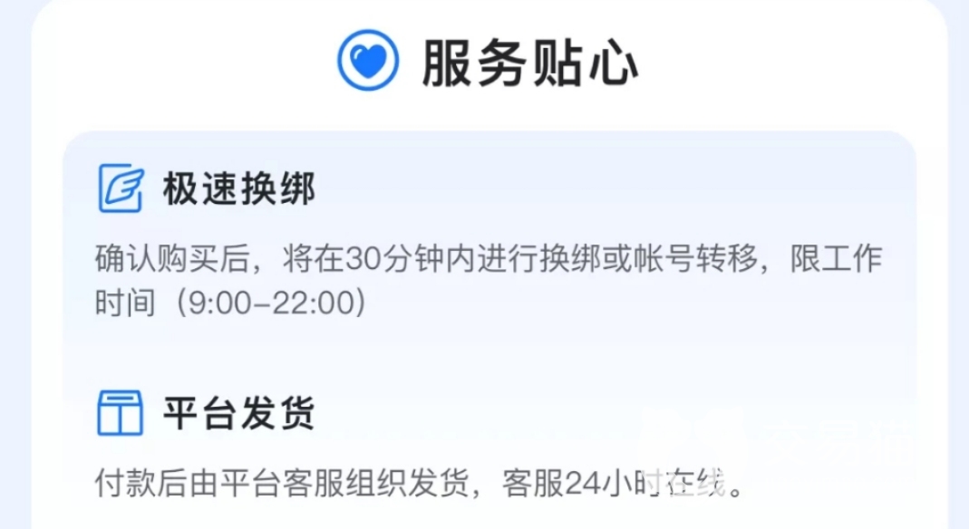 现在大家应该都知道原始传奇卖号怎么交易更靠谱了吧,只要来交易猫平台,就可以安全卖号靠谱卖号。商品上架以后把发货的事情交给平台,不用自己操作就能交易,简直是省心又靠谱,还在犹豫什么,赶紧下载交易猫体验一下吧。