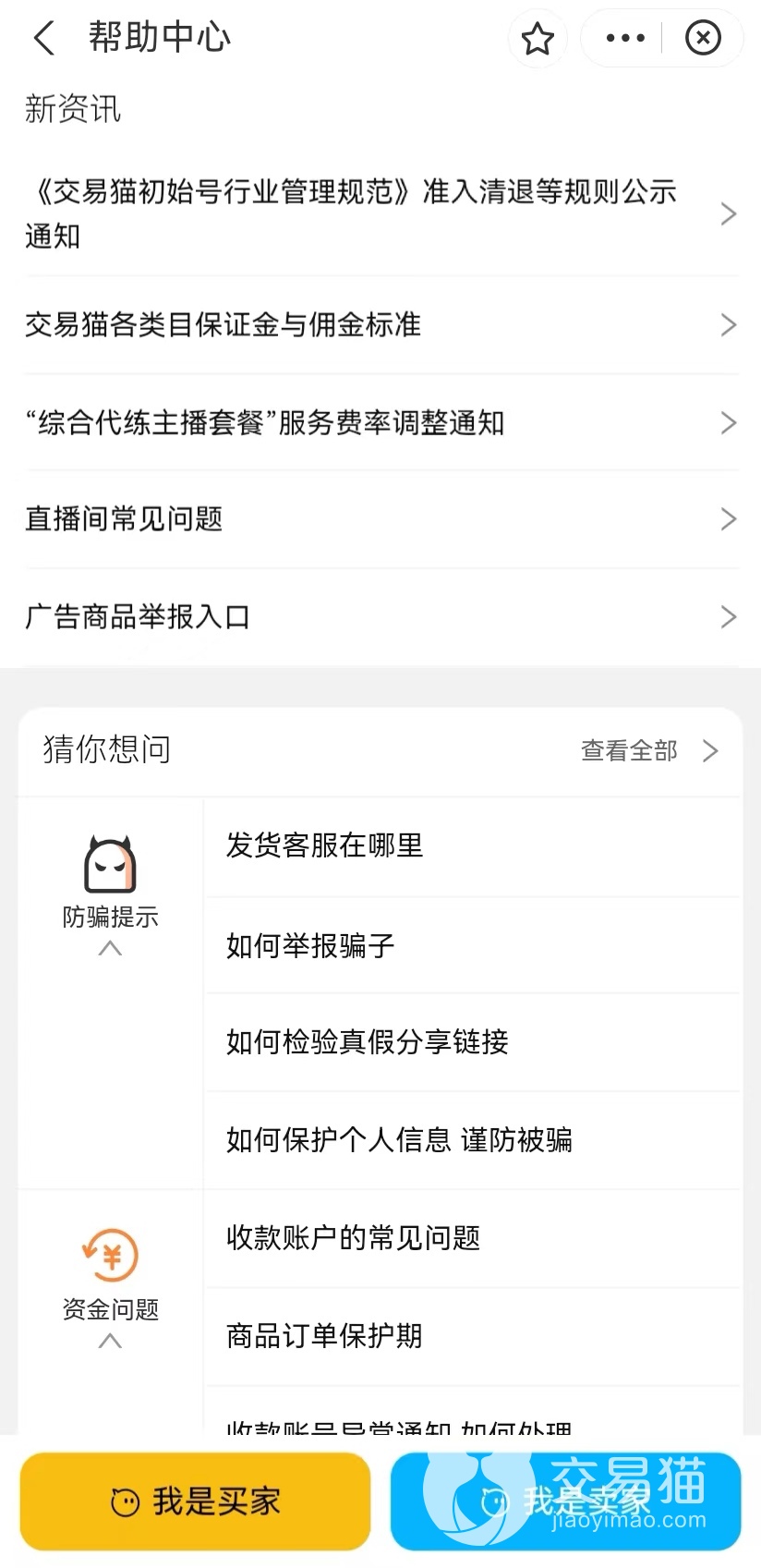 在其他好多平台当中并没有24小时全天在线的客服服务,并且在大家购买账号之后,都是无人问津的情况,但在交易猫这个平台当中你完全不用担心这一问题,客服全天在线帮助大家解疑答惑,而且在大家发现有可疑现象,出现的时候可以通过平台进行举报,只要人人都能这样做才能更好的去维护好的交易环境。