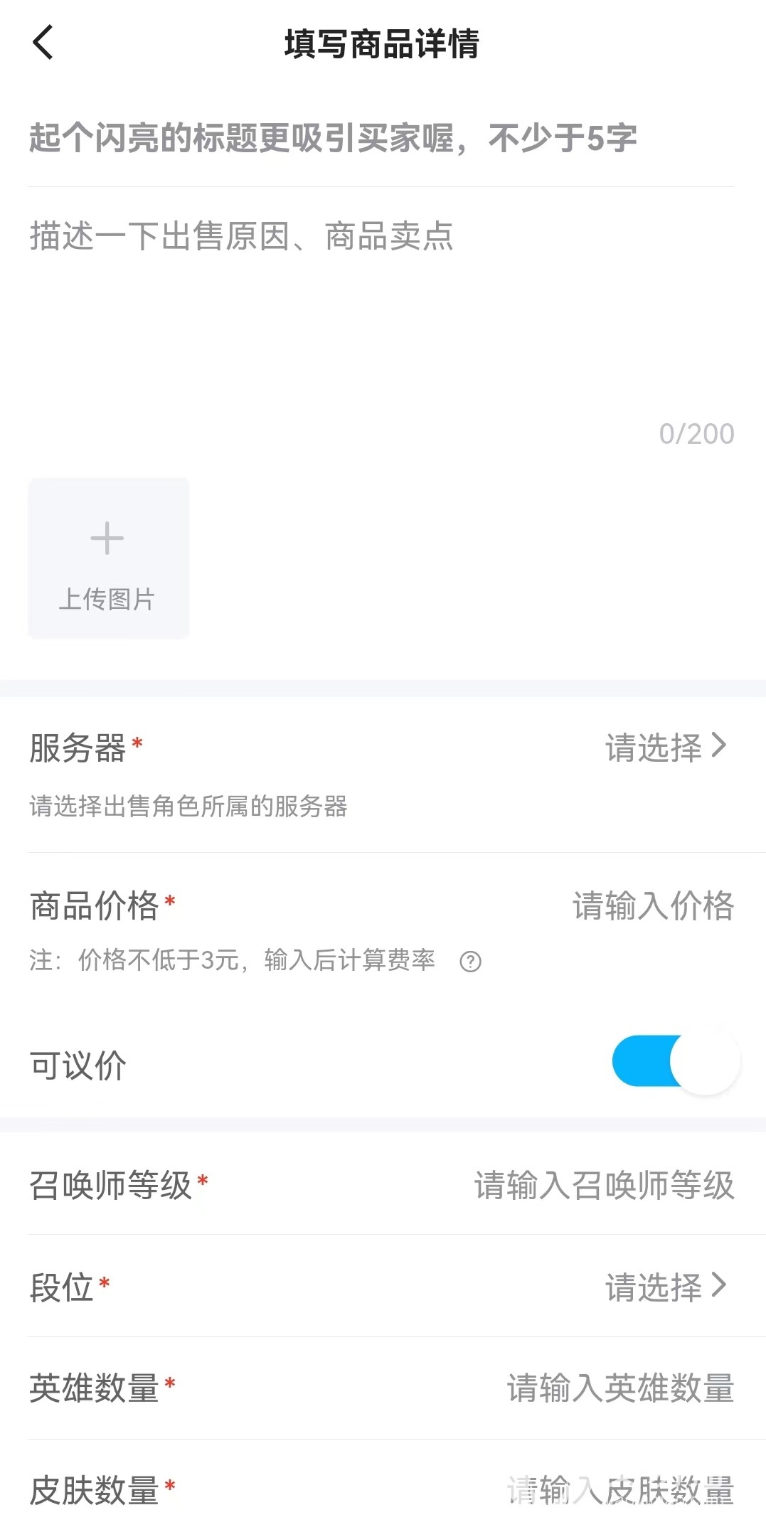无论要出售的是端游还是手游,甚至是网页游戏都能以同样简洁流程完成整个上架操作,最关键也是最繁琐的验号步骤直接交由平台来进行就可以。这样只需要填写很少一部分内容就能上架成功,即使第1次出售手中账号,没有任何交易经验也完全无需担心,填写模板清晰简单,有任何问题都可以随时咨询客服提供帮助。