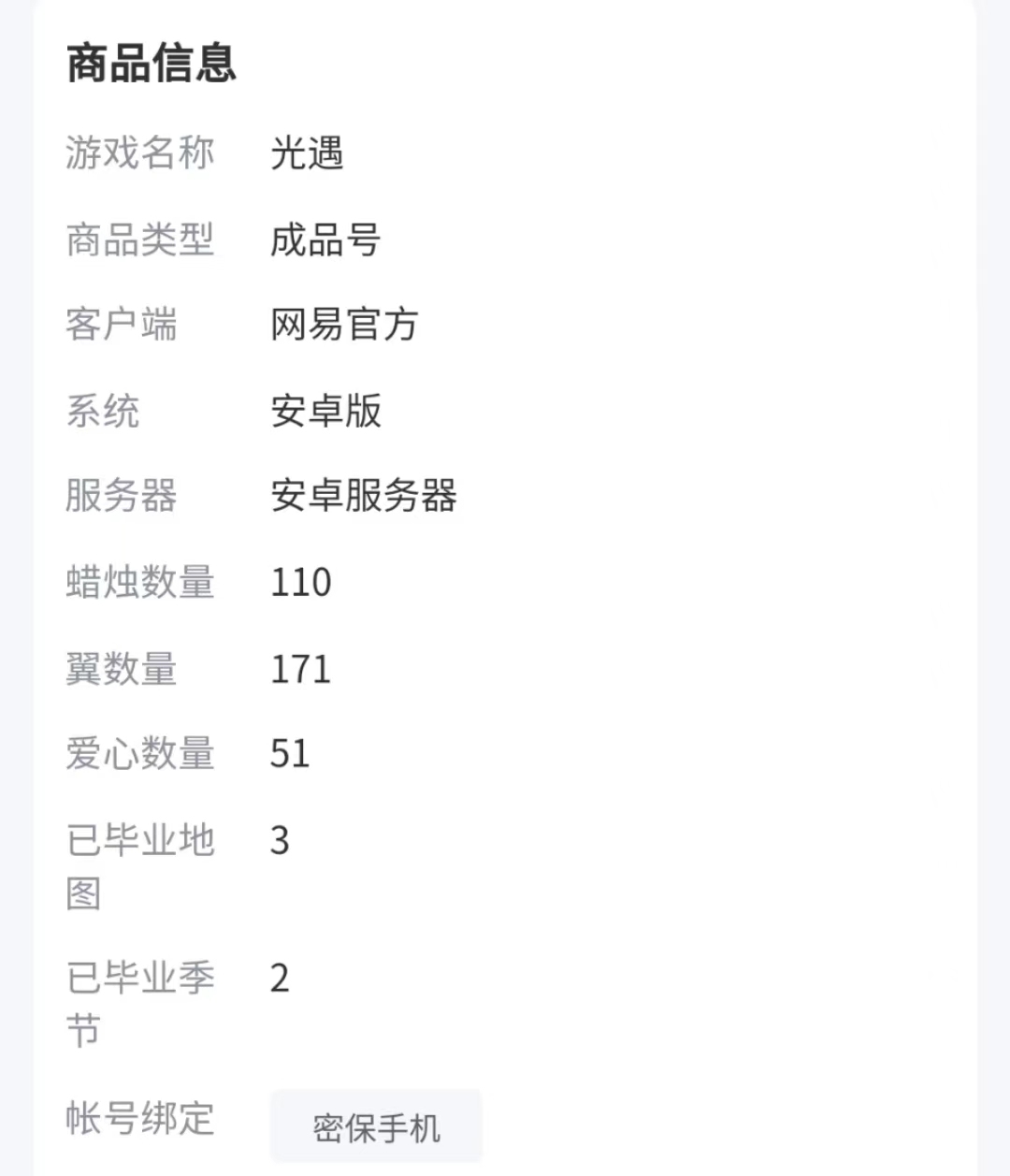 现在大家都知道光遇渠道服的号怎么卖号才方便了吧,一键就能上架账号,用支付宝就可以收款,交易猫就是这样一个方便又专业的平台,有需要的小伙伴赶紧来试一试吧。