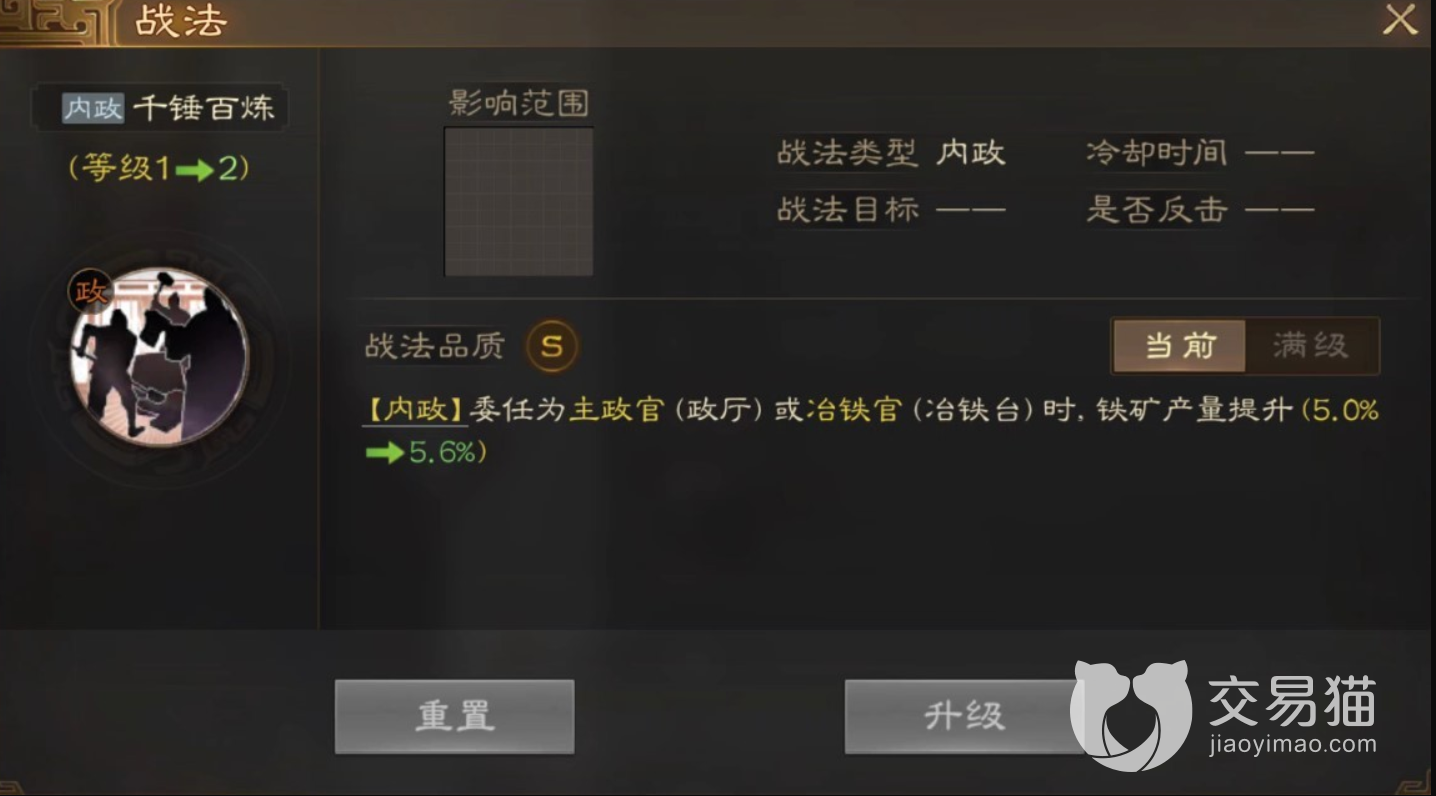 最后一点不得不提这个角色也是可以学习三个技能的,第二第三个技能选择选择练铁和铸匠,非常的容易获取,品质都是非常的低的技能,作为内政官非常的不占资源,玩家只要给一点东西他就能发光,但是这个角色在游戏前期异常的鸡肋还是要让玩家知道的,游戏在测试的时候金光是非常的难得的,一个强力的武将对于平民玩家来说是非常重要的,一般不累充的玩家攒抽奖出了这个角色建议remake,不然玩起来实在是太累了,不能战斗的角色在前期就是让玩家任人鱼肉,当然撑到后期这个角色才能发光发热,主要看玩家的承受能力了。