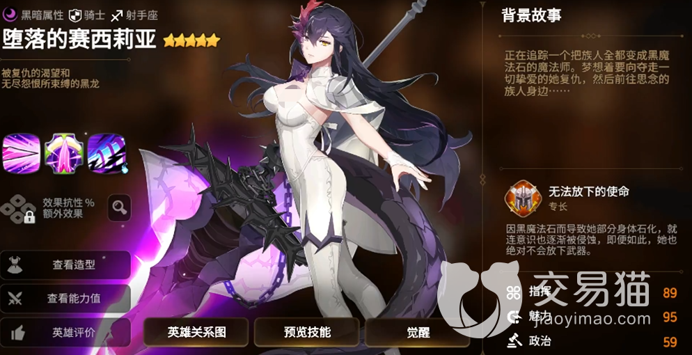 御姐范超浓,在剧情中也是一个非常有实力的野心家,最后成功的成为了女王,职业是战士,输出还可以,暴击挺强的。