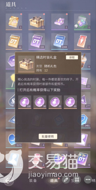 第二个是抽奖。游戏里抽奖还是很不错的,掉落概率比较高,目前推出的唯一一个奖池叫做时尚礼盒,不仅可以开出衣服,也可以开出化妆品,包包等装饰类用品。同时这个也是玩家们获取服装的主要途径,很多高品质的服装可以利用很低的成本得到。不过抽服装需要一些游戏币,而这也是需要充值的,虽然充值的价格不高,但是小编并不建议非氪金玩家去触碰这一块领域。除了购买游戏币开时尚礼盒之外,在平常的任务和支线随机触发剧情中也可以掉落,只是数量相对较少,但是也够玩家开几次了。此外,星辉币也是能够购买这个礼盒的。