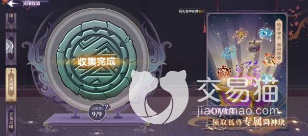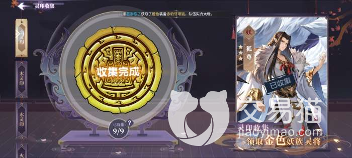 在现有的阶段中,游戏中总共拥有五种灵印种类,分别为金木水火土,集齐一定数量的灵印后,可以领取一些珍稀的种族灵将,神话卡,装备和神兵等各种奖励。不同属性的灵印所获得的奖励分别不同,收集到金灵印可获得妖族狐尊,木灵印可以获取专属神话卡,水灵印则可随机获取三件橙色稀有装备,收集完成水灵业后可获得特效神兵。