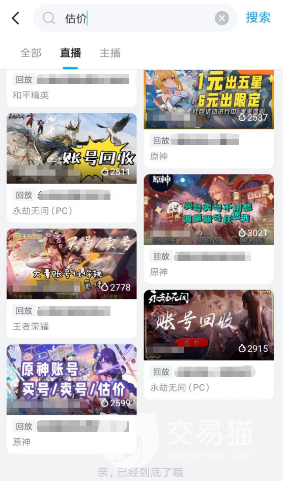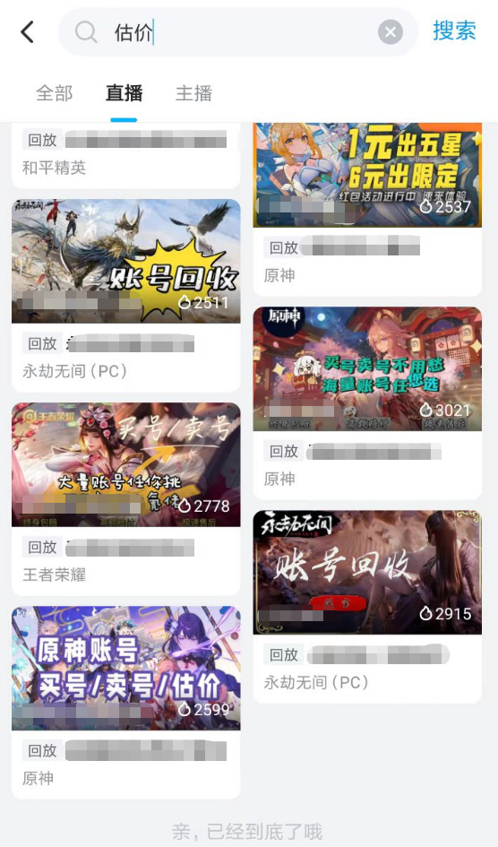 2、如果自己心里面无法确定账号的真实价值的话,可以去直播专区当中寻找估价的直播间来了解。不过各位可能需要花费一定的时间去关注,因为每一个主播所开播的游戏类型不一样,大家需要找到一个播2KOL2这款游戏的才行。