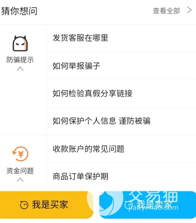 用户们可在交易猫免费学习处理各种账号交易过程中所遇上的难题,如账号被封、恶意验号等,交易猫的客服也会每天二十四个小时在线为你解答,同时,对交易猫有意见的用户们,可随时进行意见反馈,交易猫会及时酌情处理。