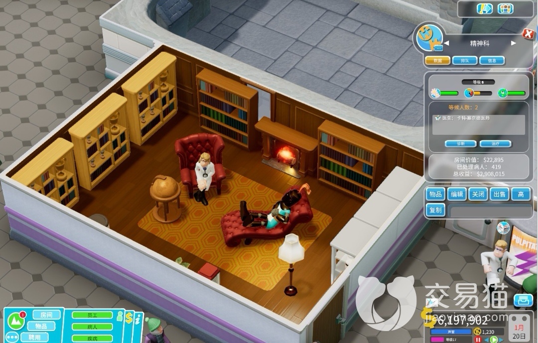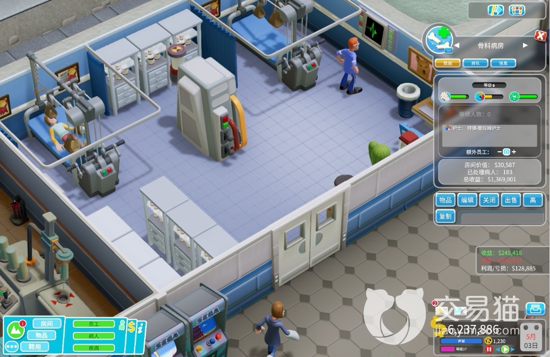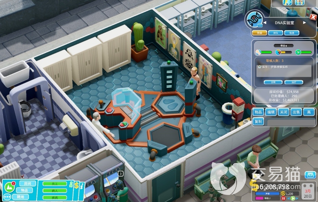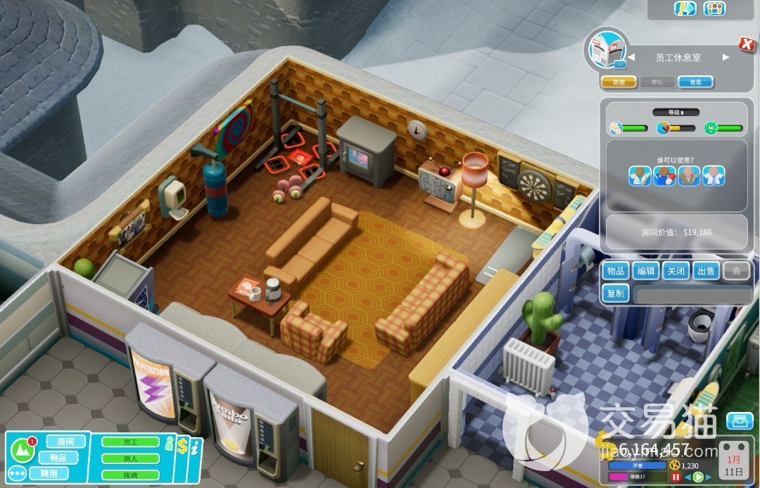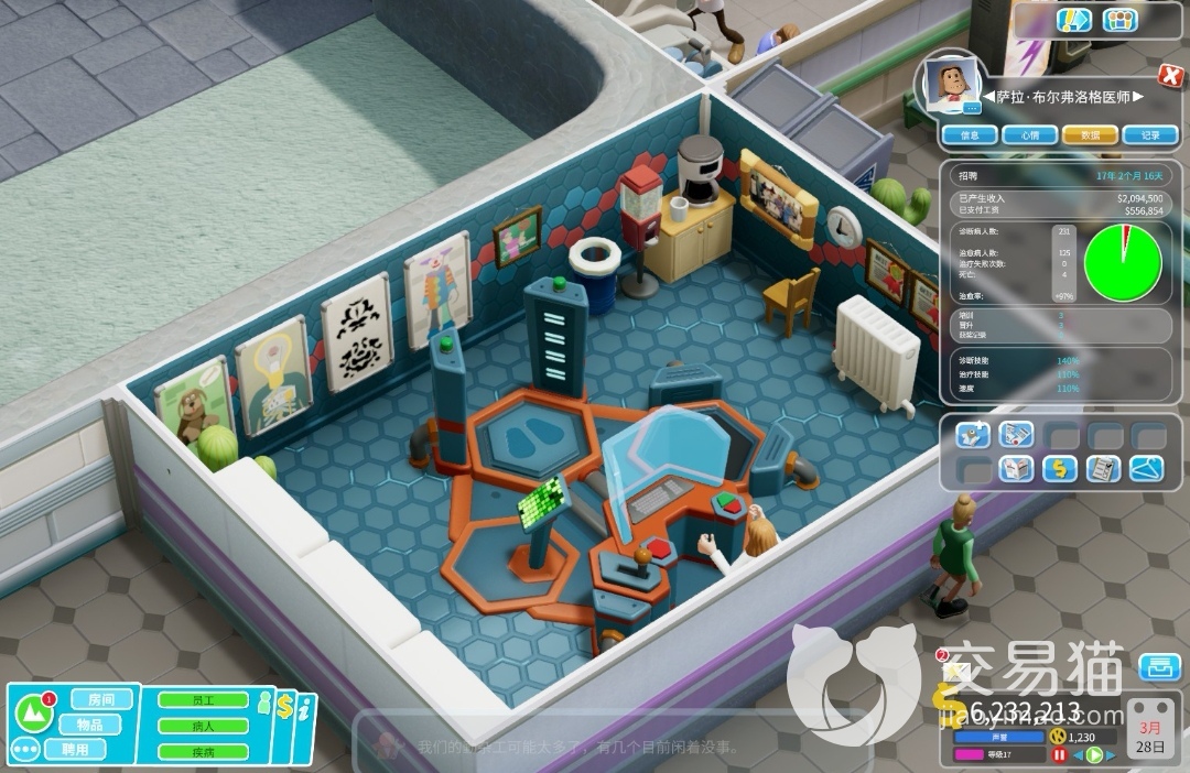 此外,玩家除了要照顾到病人的需求,同时也要注意自己员工的需要,例如:厕所、员工休息室这类房间就要设置在与诊室离得近的地方,这样有助于安抚员工的情绪,让医护人员可以更尽心尽力的为自己赚钱。