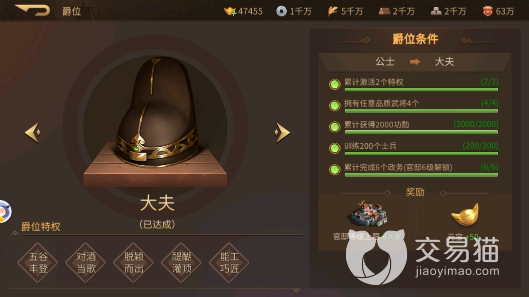 游戏还有官爵的设定,太守并不在其中,随着声望积累玩家的爵位是会越来越高之后玩家能够得到的奖励也是越来越多的,随着升官玩家能够修建的府邸的等级上限也会提升,还有大量的奖励。
