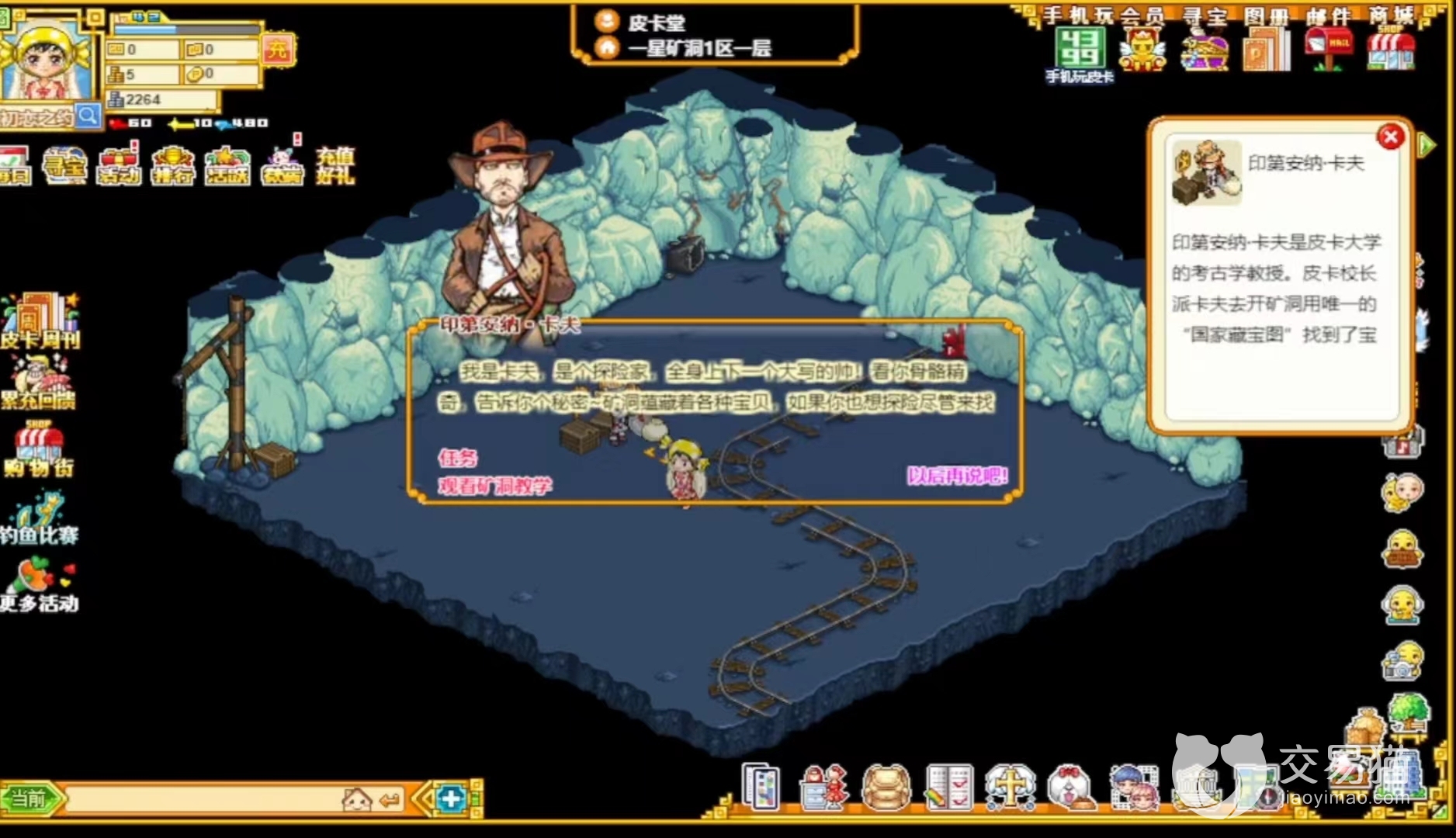 不知道玩家们在进入矿洞时有没有注意到矿洞一层有一个。戴着眼镜经常对你挥手的怪叔叔不知道也没有关系,下次碰到记得点击了解一下这个怪叔叔。玩家点击之后可以和怪叔叔进行购买或者兑换。远古化石在这个地方就可以体现出它的作用了。