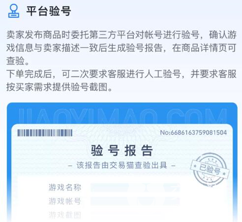 交易猫内有很多优秀的客服为大家服务,确定下单之前可以先向客服申请查看该商家上架的的账号的商品验号报告,很多账号都会在上架之前选择先验号,一是平台需要保障账号真实性,二是买家买号也会更加的放心。