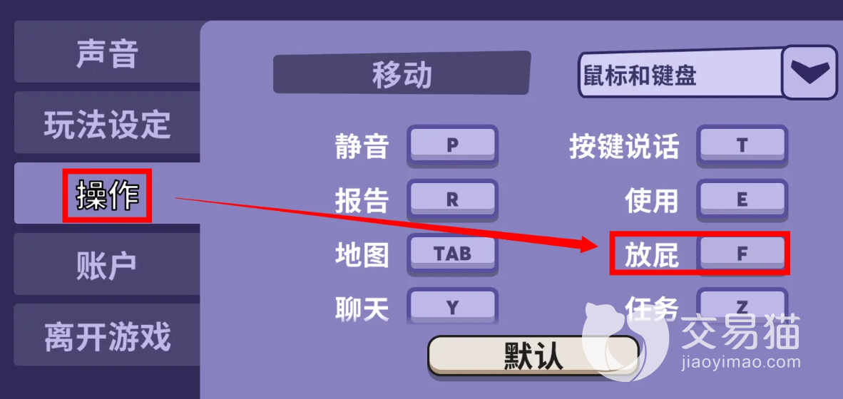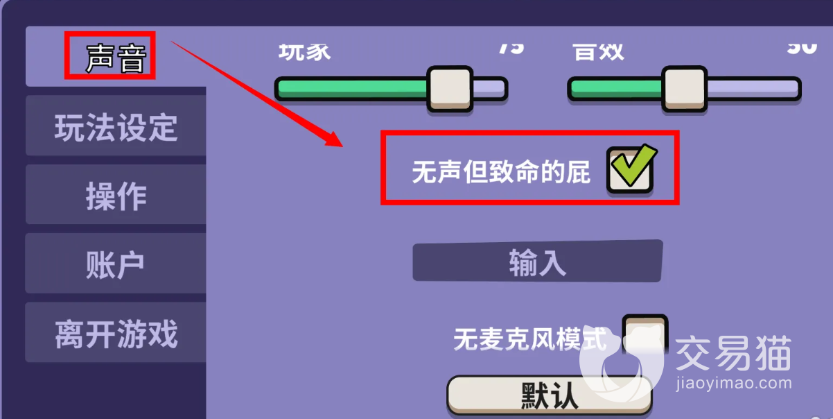 这个游戏里面的放屁功能可以说是一种整蛊的技能,各位在进入游戏的时候就可以点开右上角的设置按钮,然后在声音这个页面勾选上无声但致命的屁这个选项。然后再到操作界面中为放屁这个功能设置快捷键,常规的是F键。