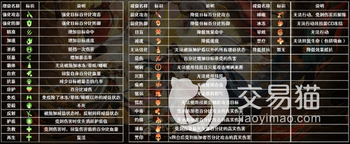 首先对于加成的效果,除了盾牌以外,所有的增益效果都是无法叠加的,加成会自动选取最大的那一个。而减伤效果和增益状态一样,燃烧/中毒/流血/诅咒/可以叠加,也可以根据源的不同而叠加。想知道具体对应效果的可以看看以下图表。