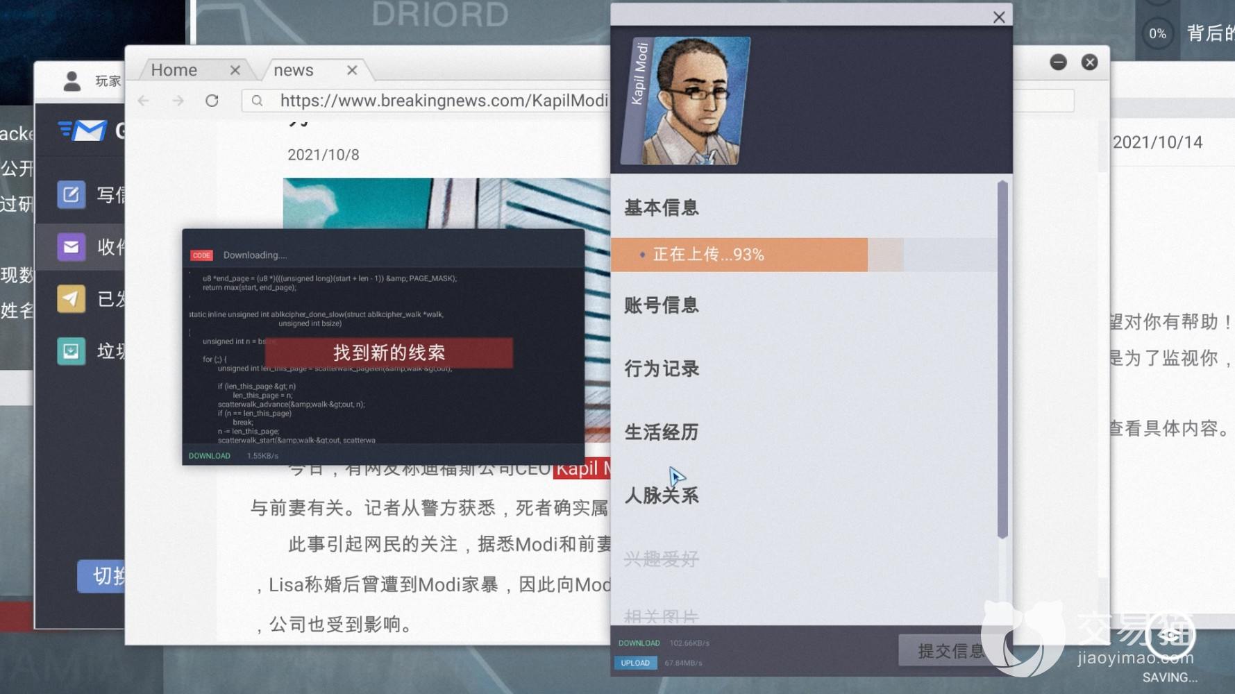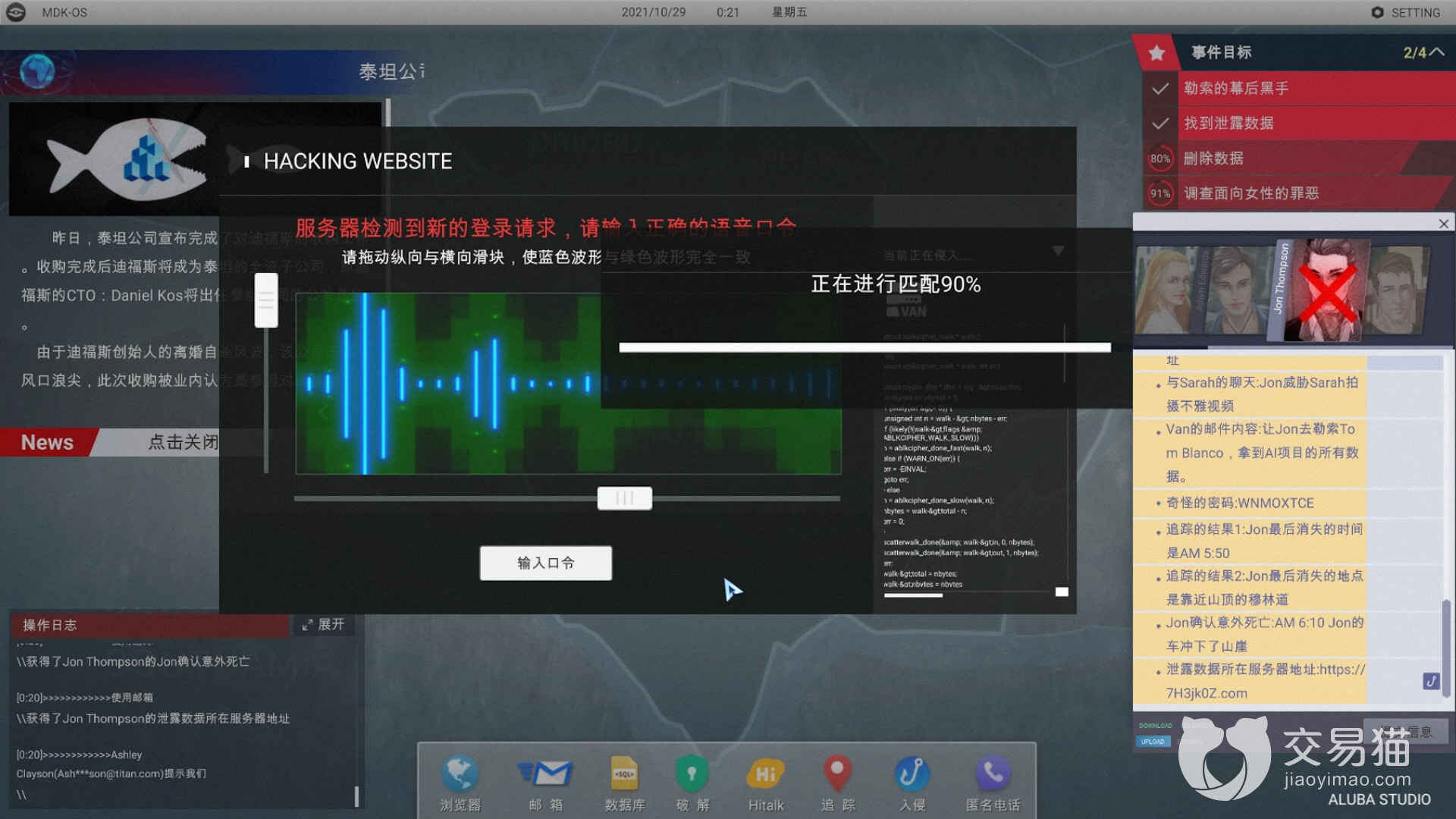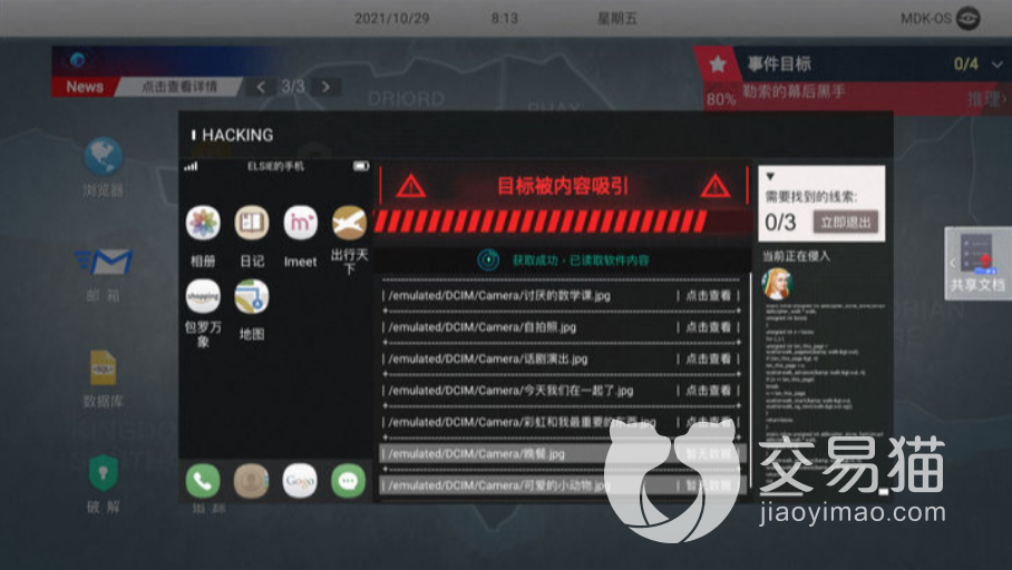 在游戏的操作方面模拟了电脑的界面,下方的菜单栏里常用的软件,包括“浏览器”、“邮箱”、“HItalk”、“电话”都会存在,甚至还有“地图追踪”、“入侵”、“破解程序”“数据库”这样“黑客”专用的软件程序。跟随剧情的不断推进、章节的逐步解锁,考验大家合理使用他们之间的逻辑顺序,也就变得尤为重要。
