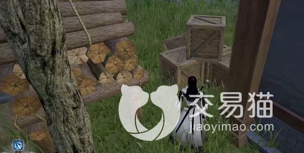 大家先来到德武堂之后,可以看到在房子的门口有一个NPC,是一个扛着大刀的男性角色,还有一个白色的披风,比较明显,在一个推车旁边,看到他之后在他那里接下任务,接下任务之后就可以来到地图的缺口位置,在这里有很多的小木箱以及木头。