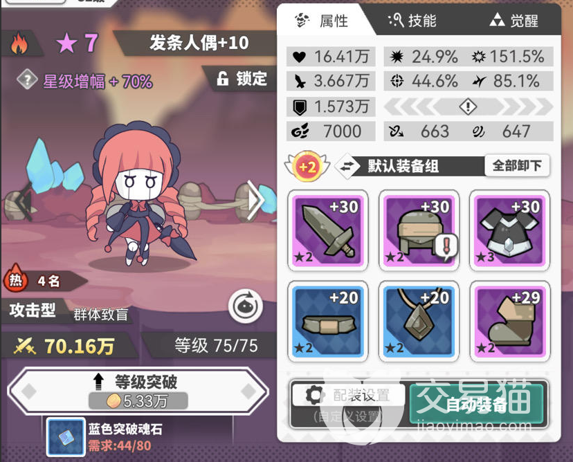 这套阵容的核心就是发条人偶了,另外前排搭配一个火熊,其他位置的使魔自由搭配即可。首先我们看一下发条人偶,这里我们就直接选择火属性就行了,火属性的发条人偶伤害以群体伤害为主,火属性伤害还能无视物理防御,所以这里我们选择将发条人偶放在后排当做阵容的主C。