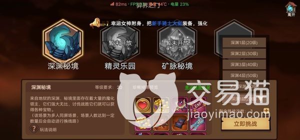 深渊秘境这个玩法,它并不是想挑战就能直接挑战的,它是有挑战次数限制的,而且还有挑战等级限制,比如深渊一层的话,就需要大家的游戏等级达到20级才能挑战。