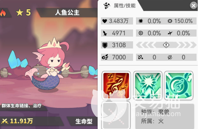 对于选择人鱼的玩家来说,尤其是它的火属性,使用起来就好比是暴力奶妈的存在,除了对阵容中的角色提供生命光环,其单体治疗效果以及输出也是不赖的,那些还处在前期的小伙伴,使用它就很合适,不仅能适应多个阵容,同时发展起来也会更加快速。