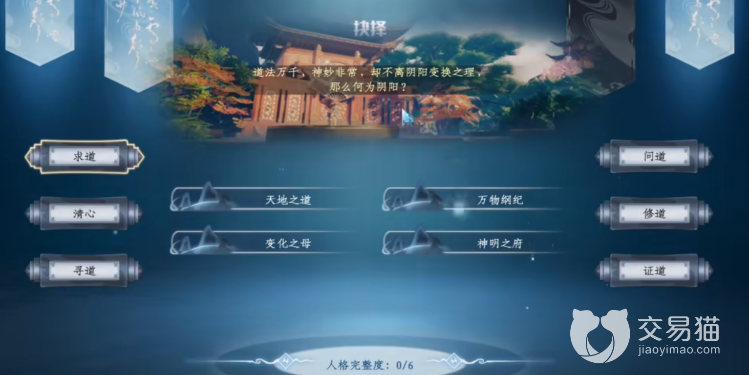 后面玩家会进入详情的疑问,里面系统会随机提出几个问题选择好之后就会给出玩家相应的一个道法,三个个里面会出现一个,这个就是天地人道,之后会生成一个属性列表就是玩家的初始的属性。