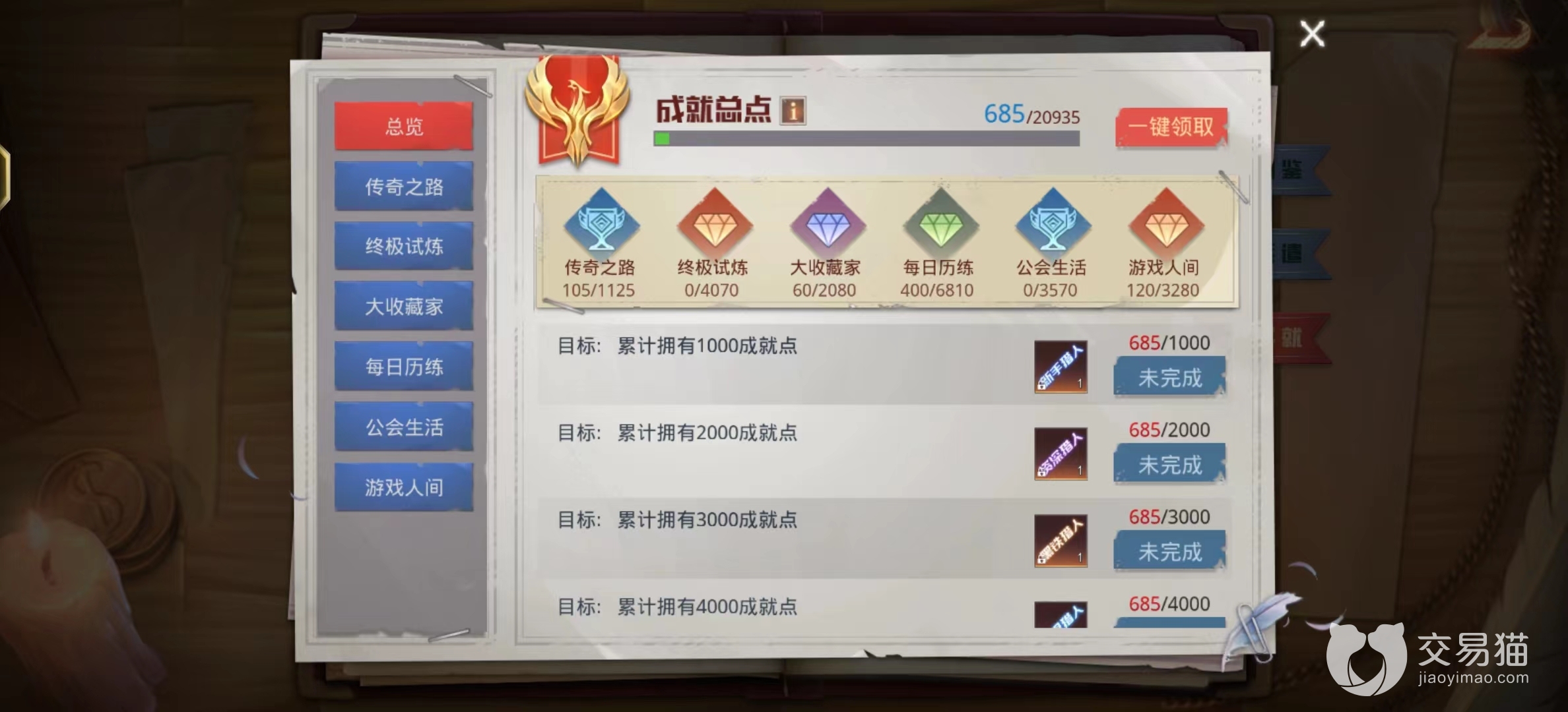 成就中一共有六个奖励项目,满足不同的条件可以获得不同的奖励,比如说传奇之路的奖励以坐骑成长石为主,终极试炼的奖励以宠物成长石为主,不过最重要的还是总览当中的奖励,当你在各个成就中拿到足够多的成就点,就可以兑换称号奖励,称号奖励可以直接提升属性,非常的实用。