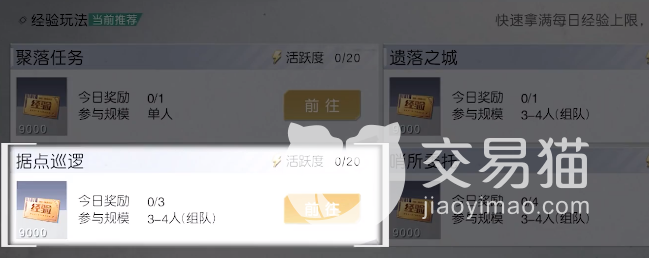 经验任务的形式有几种,其中单人的只有聚落任务,每天可以领一次奖励,做起来也很快,一般推荐大家上线就单人去给它刷掉,然后把经验奖励领了,单次和其他组队任务给的奖励档位是一样的,属于最具性价比的任务,然后其他比如据点巡逻,遗忘之城,哨所三种形式都是需要组队完成的,三到四个人组成队伍,然后每天可以完成多次,相对会花一些时间,玩法内容就是到各种地方去打怪,遗忘之城是副本,哨所和据点也是类似的场景,只不过场景之间的环境有区别。虽然完成时给了经验值,但在攻略过程中也有对应数量的物资奖励,日常嘛,多次刷之后变熟练,就可以很高效的完成了。